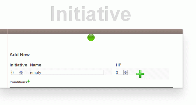 Once a character is added click the plus sign next to conditions to add a condition. You can save the condition by clicking the disk icon.